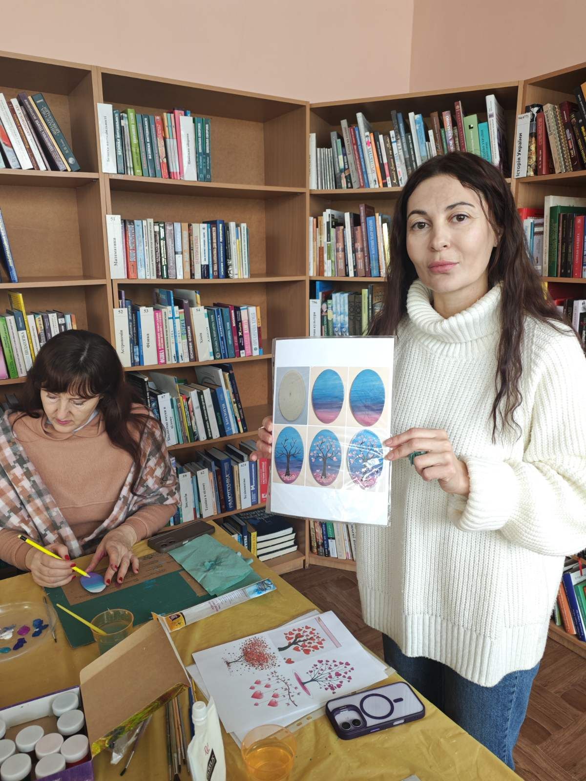 Керівник гуртка “Арт-дизайн” Вишнівського центру творчості дітей та юнацтва Пантєєва Руслана Миколаївна та учасники захопливого майстер-класу поринули у світ хендмейду. Кожен створений магнітик став не просто сувеніром, а символом любові, надії та незламності.