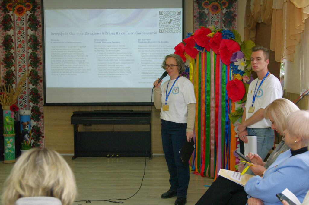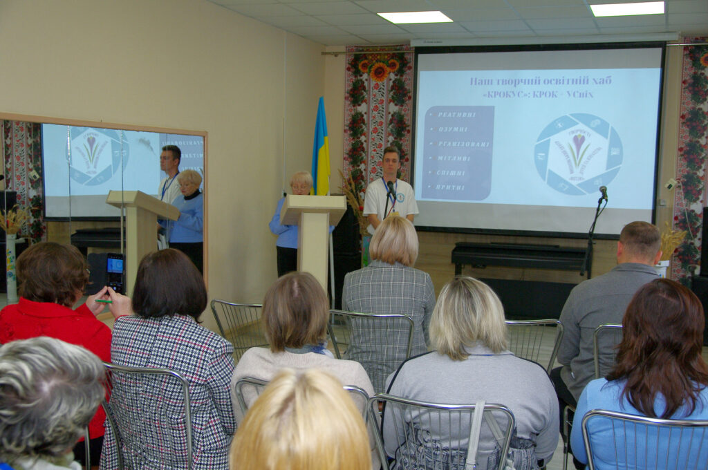 Ключовою темою стала презентація результатів п’ятирічного проєкту з розробки та впровадження освітнього хабу «Педагогічний дизайн: траєкторія професійного розвитку педагога». Спікери — директорка центру Тетяна Стаменова та її заступниці Оксана Донцова й Аліна Мотрич — представили досвід перетворення ідеї на дієвий освітній простір.