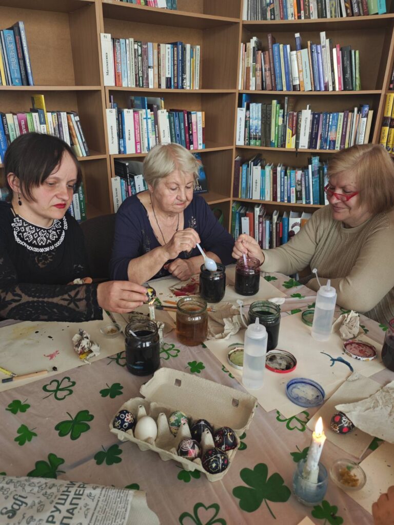 1 квітня на базі КЗ «Публічна бібліотека Вишневої міської ради» відбувся майстер-клас із писанкарства для внутрішньо переміщених осіб.