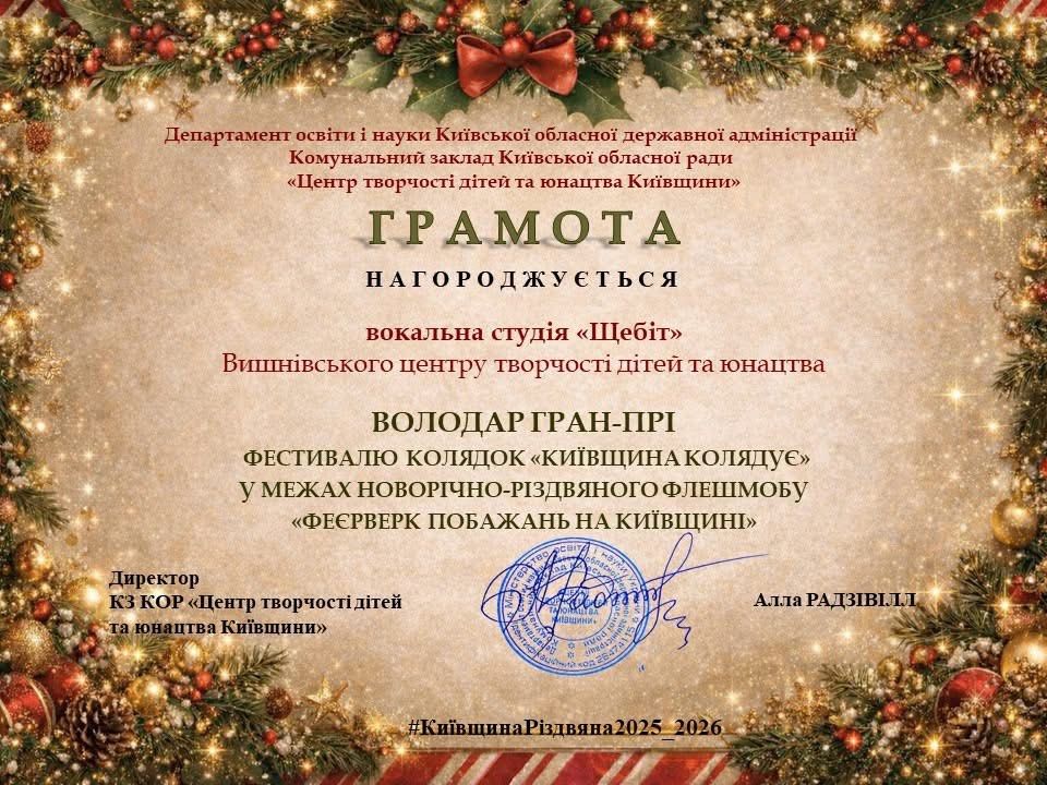 ✨ Вітаємо переможців Вишнівського центру творчості дітей та юнацтва у фестивалі колядок «Київщина колядує» в межах флешмобу «Феєрверк побажань на Київщині»